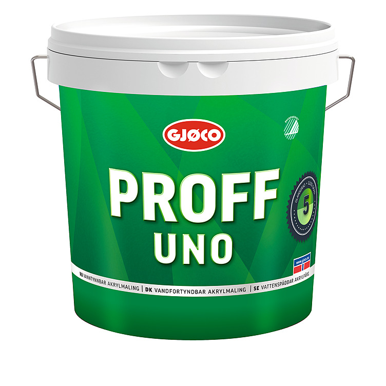 Gjøco Proff Uno 5 base hvit, base A, base B og base C Last updated 07 Jul 2025 Barcode (GTIN): 7041530056061,7041530057204,7041530056078,7041530057211,7041530056085,7041530057228,7041530056092,7041530057235 Type: Innendørsmaling Licensing number: 2096 0018 Environment branding: Svanemerket Brand: Gjøco Brand website: https://gjoco.no/no/ Licensing company: Gjøco AS Licensing website: http://www.gjoco.no See also Svanemerkets krav til maling, beis og lakk